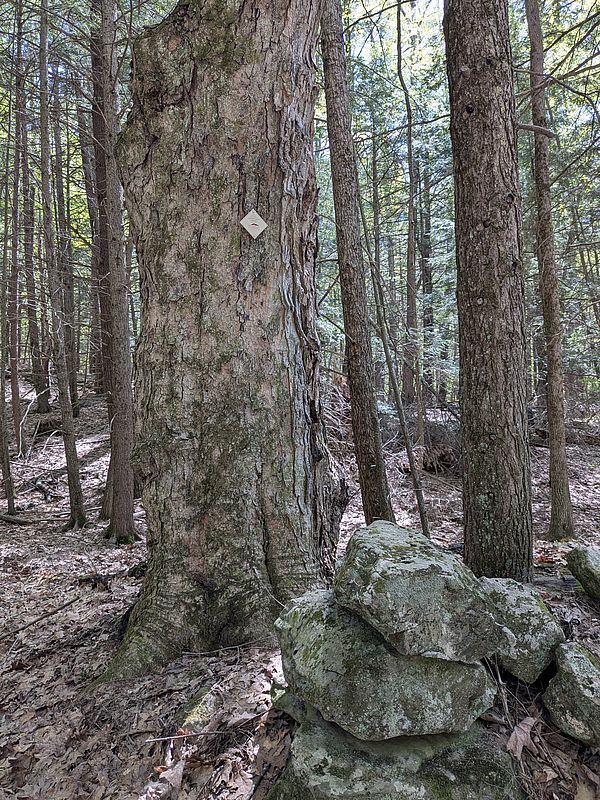 To this day, I still enjoy photographing trees and this year I captured images of spectacular ones while monitoring the Conservancy’s easements. I am most excited by large trees that have stood for hundreds of years and managed to weather many storms, ward off forest pests, and evade the chainsaw. Many of them are boundary trees with trunks extending near or across a property boundary. Landowners typically leave these trees uncut to avoid encroachment. With diameters of thirty inches or more, they dwarf the forest around them, like the way Mount Monadnock dwarfs the other hills in our region.