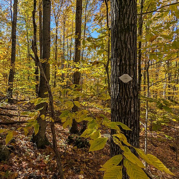 While monitoring visits often focus on documenting violations, noting boundary issues, and identifying invasive species, it is also a wonderful opportunity to meet with landowners to discuss management options and educate them about the land they are protecting. Prior to monitoring we contact landowners to schedule visits. Landowners are not always available or able to walk their property, but we try to meet with as many as we can, even if it's just to catch up for a few minutes before or after the walk. I met with dozens of landowners this year. For some, it was their first venture out as they had been wary about bushwacking on their own. Others were familiar with their land, which may have been in their family for generations. Landowners enjoyed showing me the places they explored while growing up or sharing stories about their family history in the region. I shared my knowledge on tree identification, forest pests, and forest management. Each visit was a learning experience for all involved.